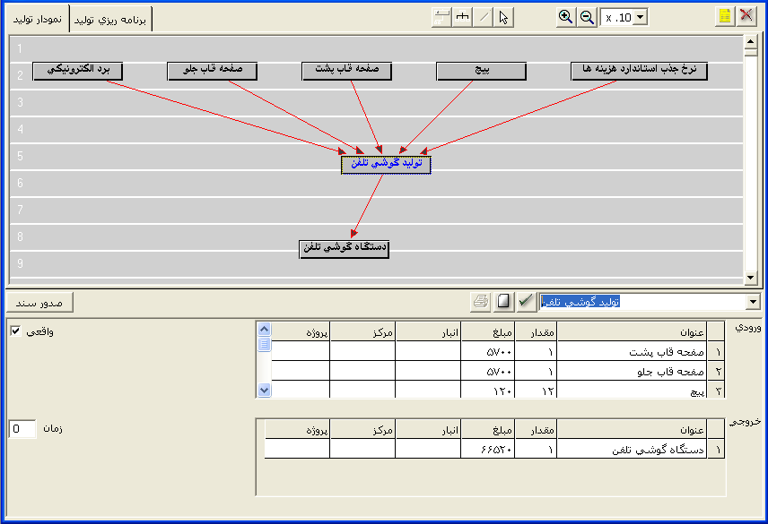 موسساتی که فعالیت تولیدیشان کارگاهی است، و نه خطی، معمولا برای صدور سند تولید نیازی به تعریف جداول فوق ندارند. در این حالت عملیات تولید یک محصول مستقیما در اسناد تولید ثبت میگردند. با صدور سند تولید مواد مصرفی از انبار مربوطه خارج و محصول تولید شده به انبار مقصد وارد میگردد.